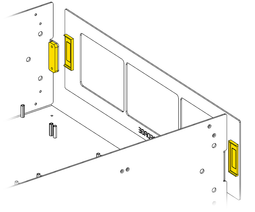 These air blocks help the case facilitate proper front to back air flow. There is an integrated fan connector holder for the front fans. The side blocks are different than the middle blocks.